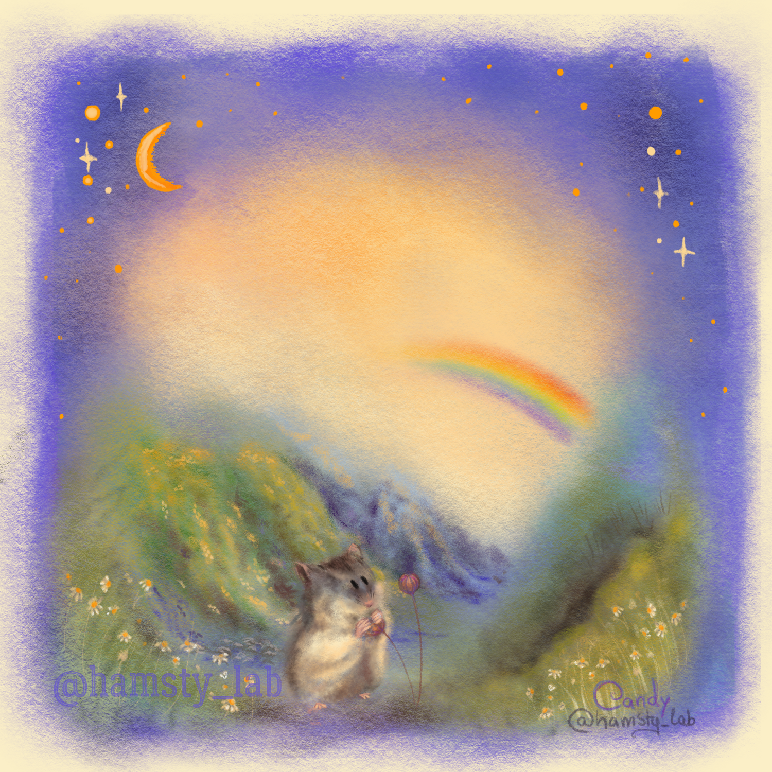 Miniature Hamster Portrait (Oil, 5x5cm canvas)
