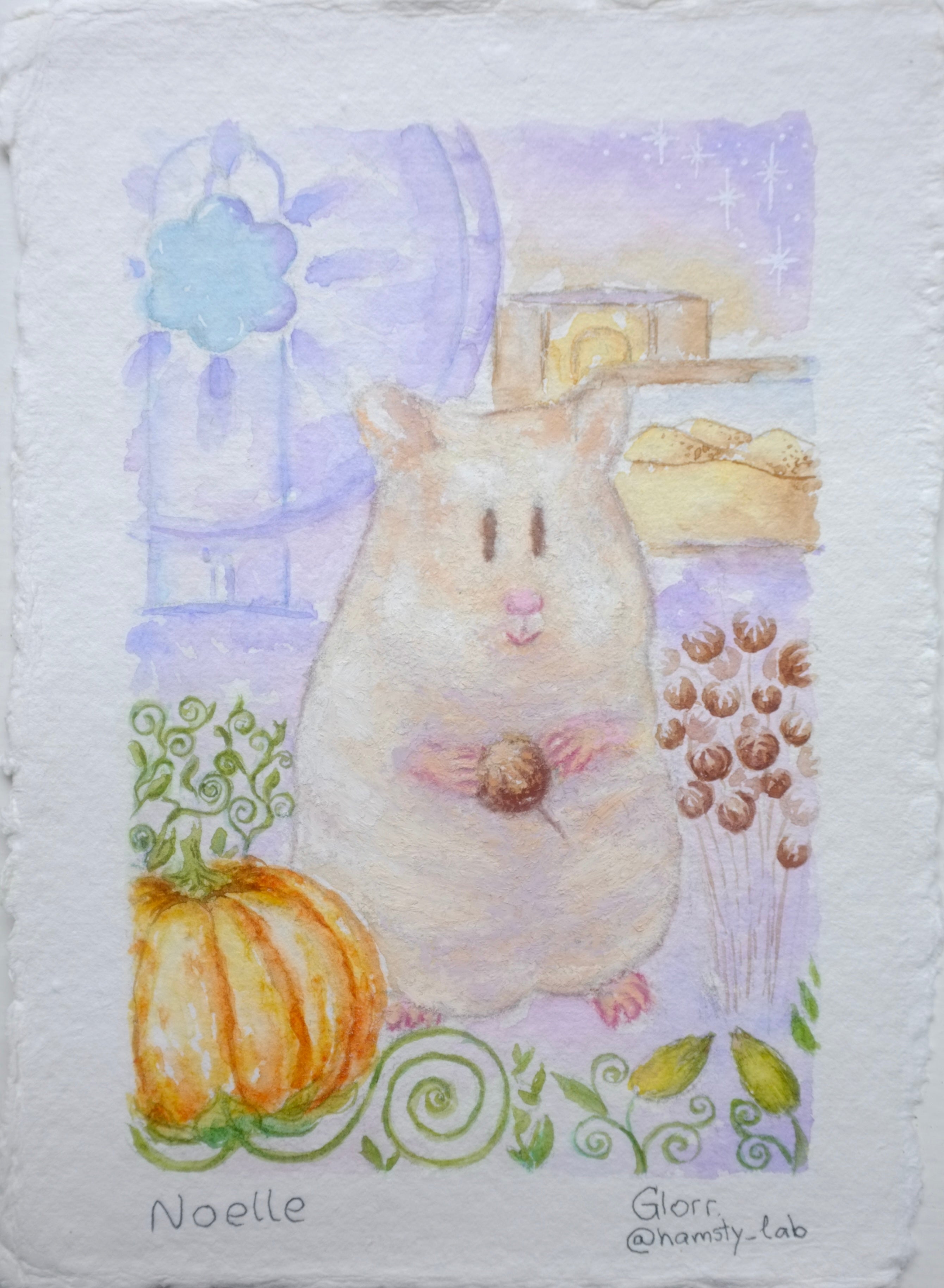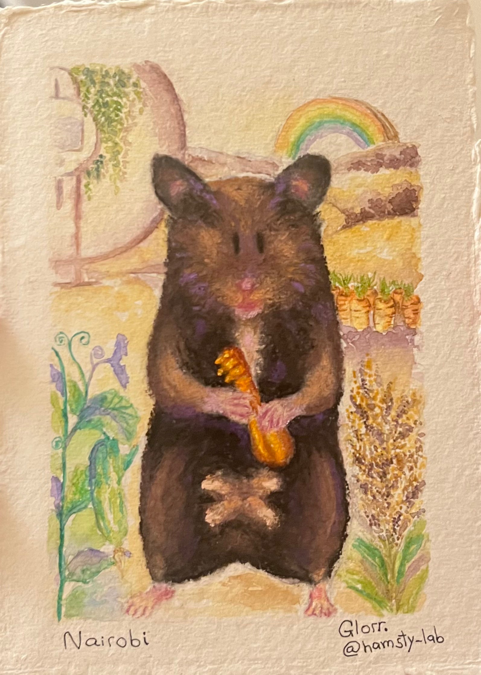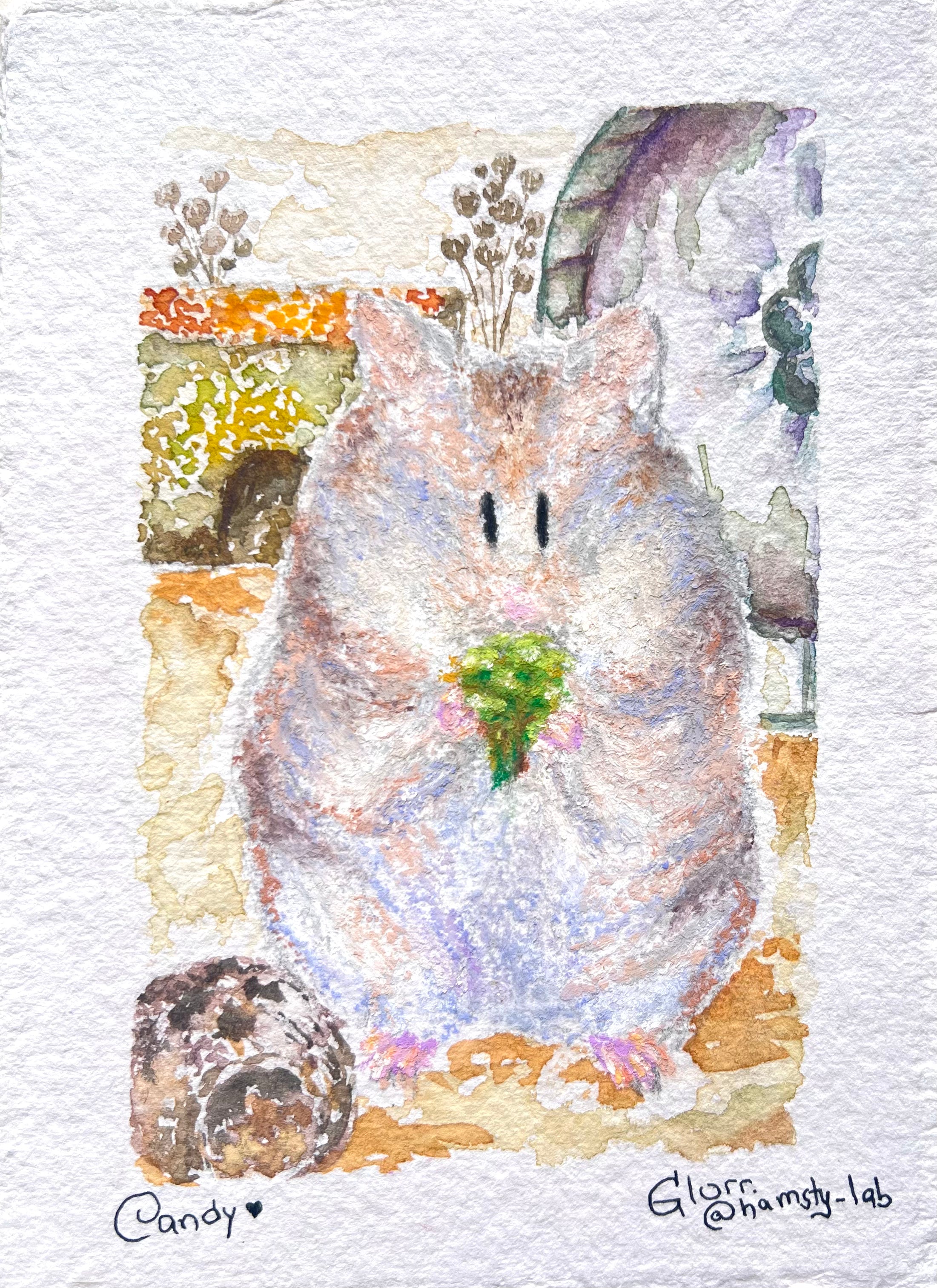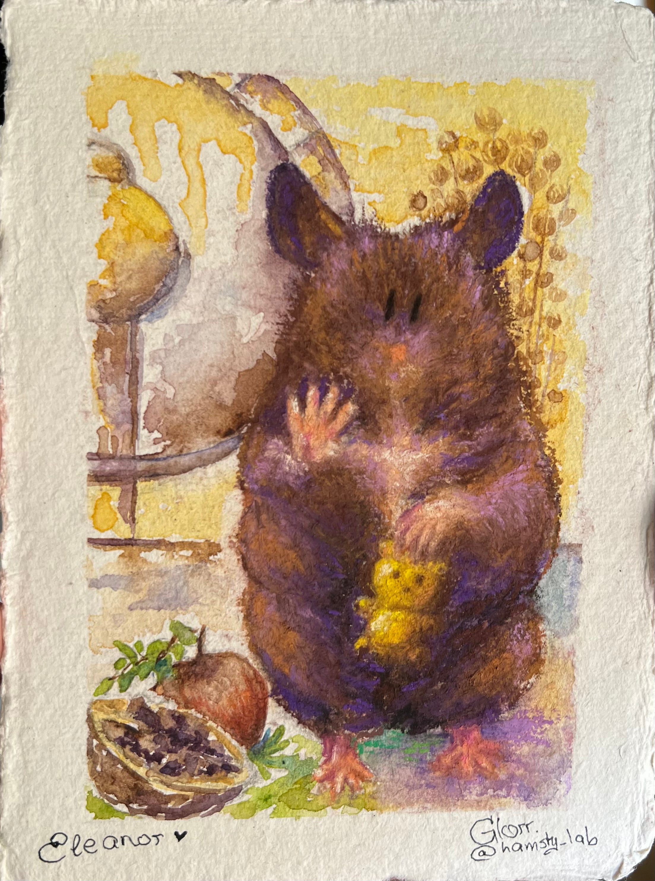 I will need the name of your hamsty and their photos (recommended that one is made at eye level). Their favourite treats, sprays or activities with photos (usually 2-5 per painting). Please specify which one is optional and which is compulsory to paint. Anything else you'd like included, such as a specific colour palette.