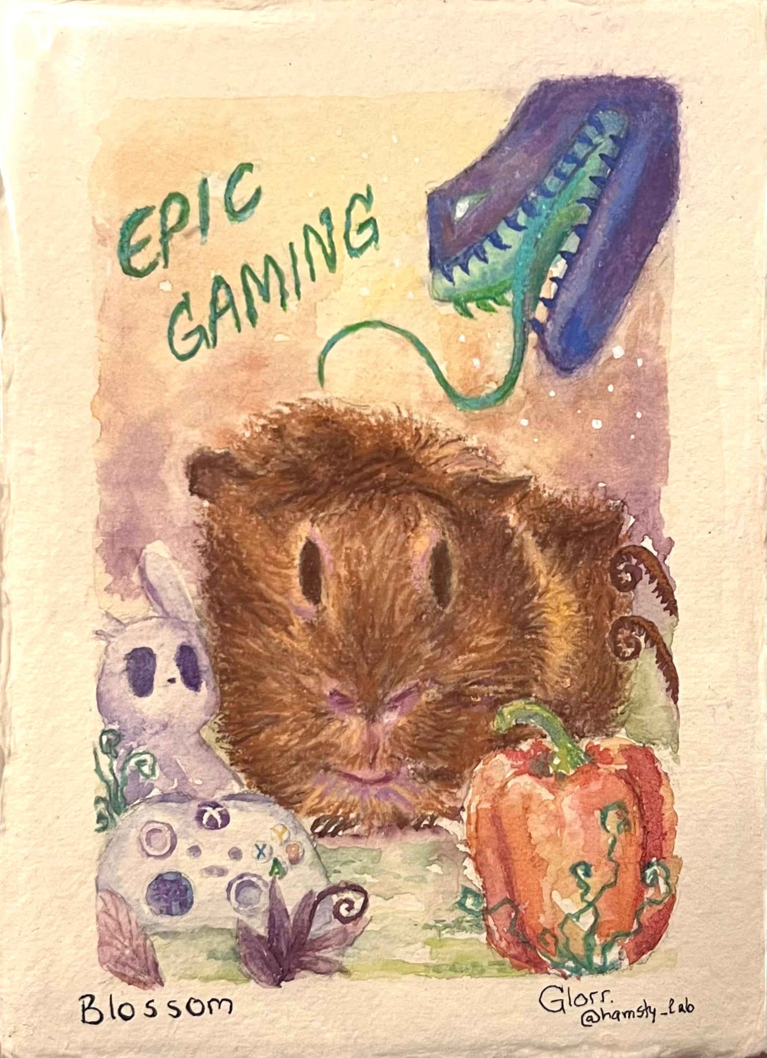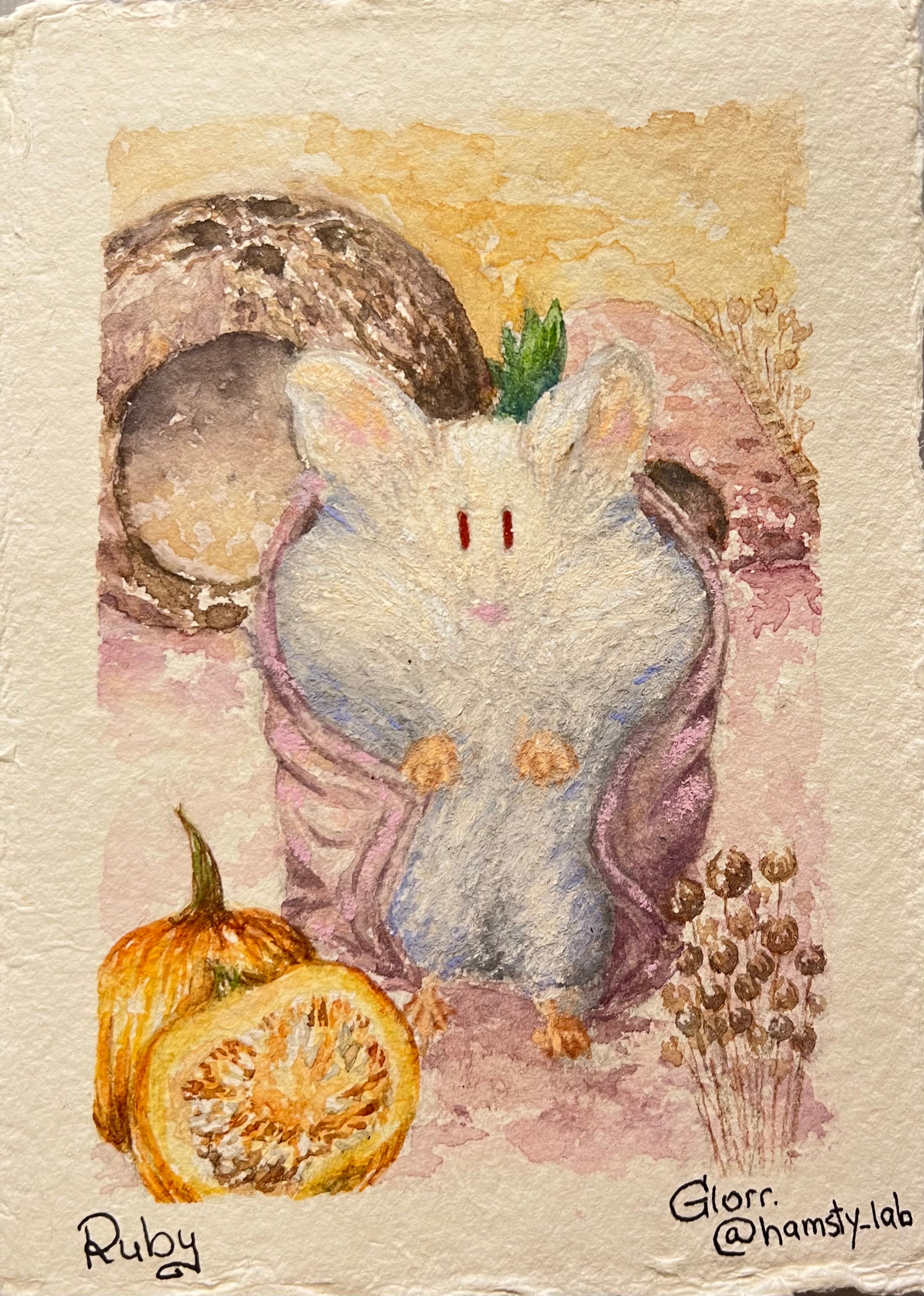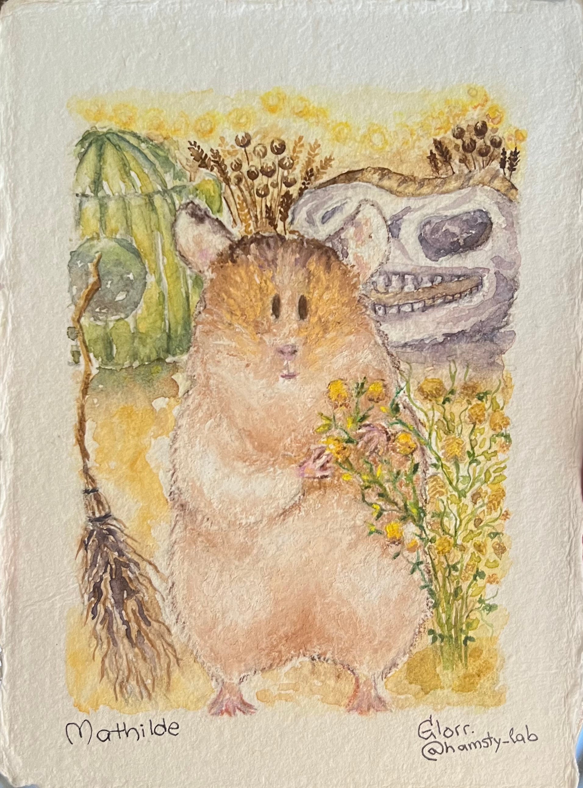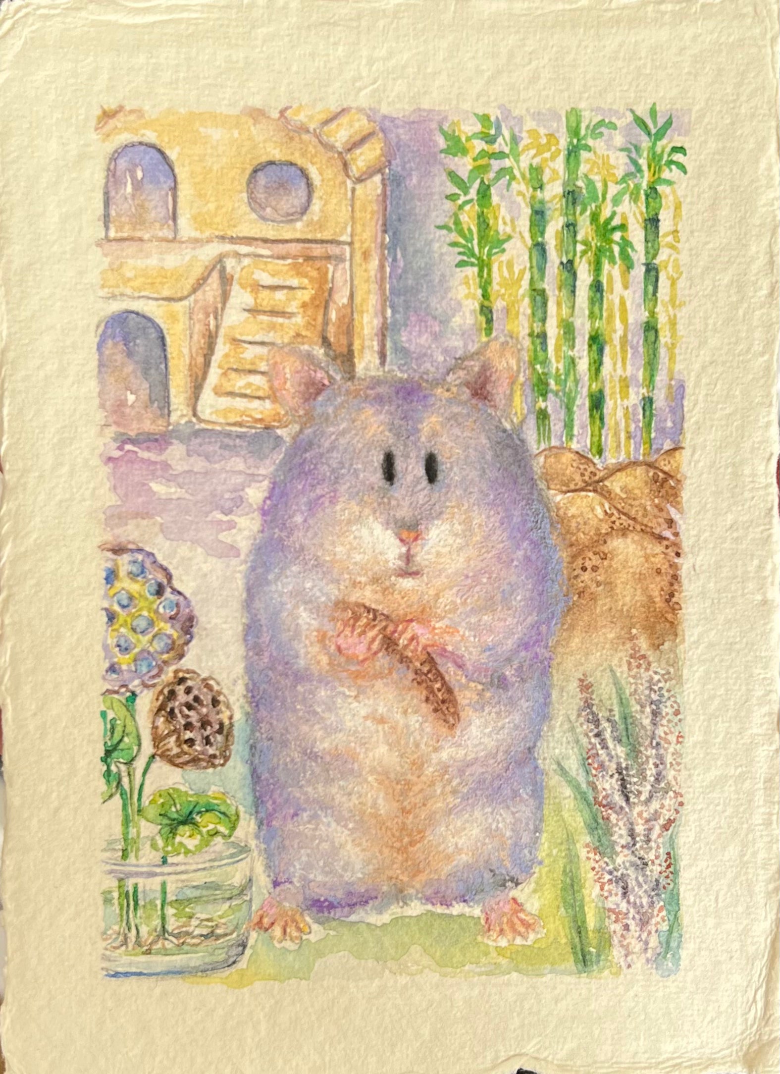 I will need the name of your hamsty and their photos (recommended that one is made at eye level). Their favourite treats, sprays or activities with photos (usually 2-5 per painting). Please specify which one is optional and which is compulsory to paint. Anything else you'd like included, such as a specific colour palette.
