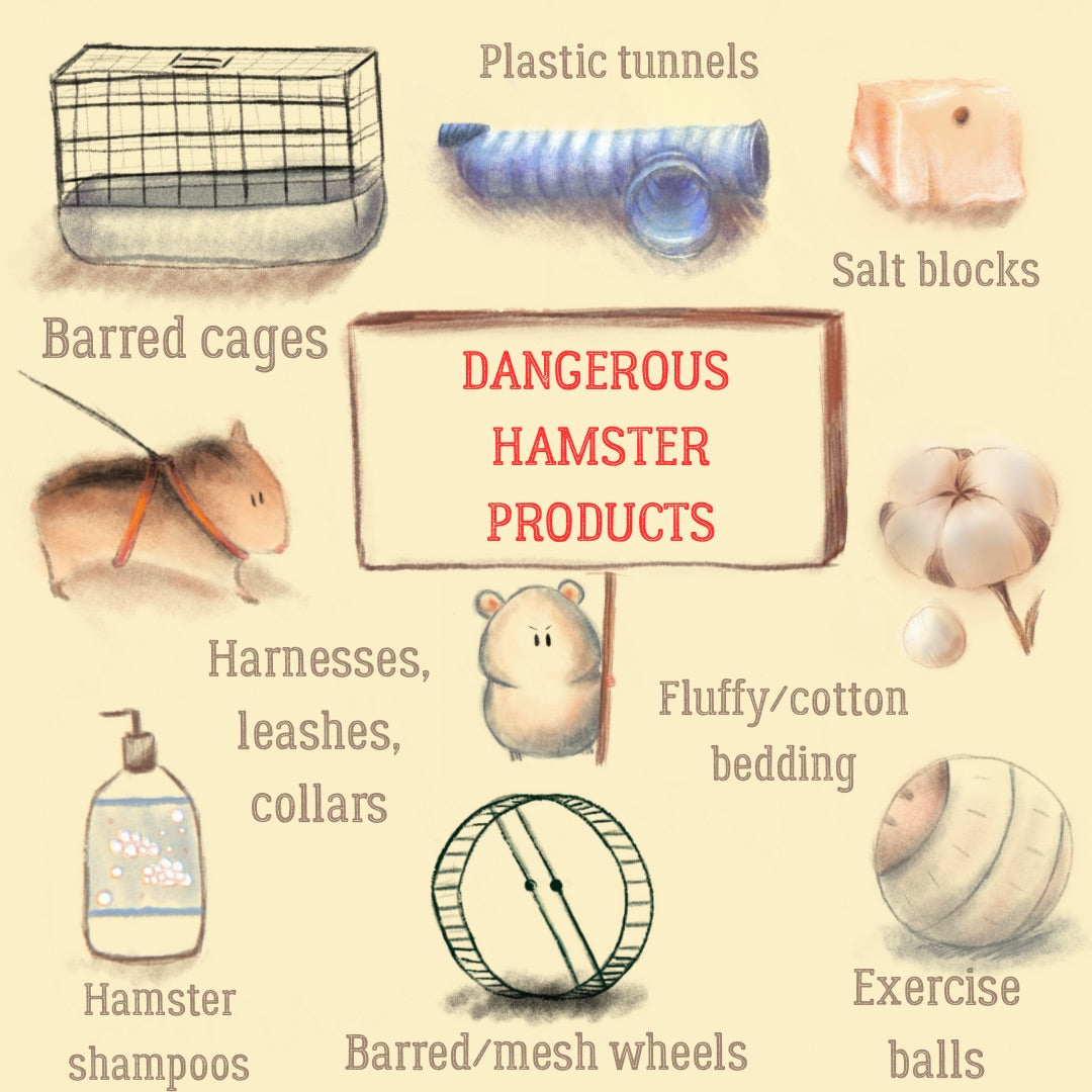 Эта инфографика описывает основные, не подлежащие обсуждению потребности каждого хомяка. Чтобы найти эти товары, загляните не только в отделы товаров для мелких животных, но и в отделы для рептилий и птиц в зоомагазинах. Подходящие товары также можно найти в магазинах товаров для рукоделия, товаров для дома и в интернет-магазинах.